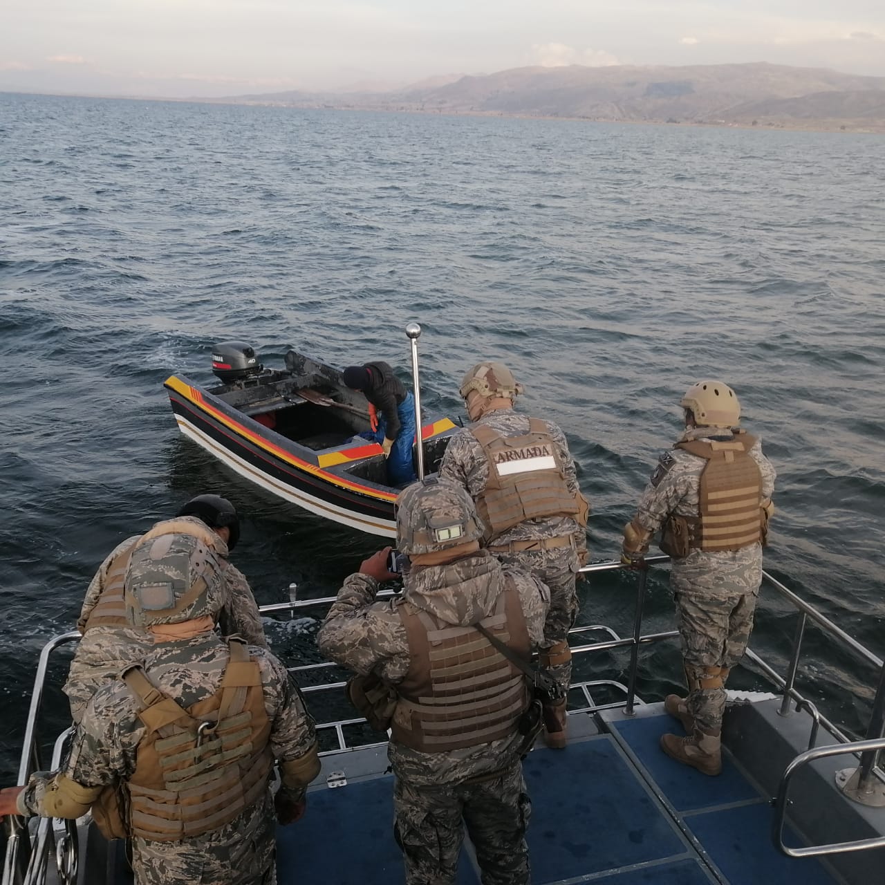 “Estamos a bordo de la Lancha Patrullera 435 Antofagasta, perteneciente a la Armada Boliviana, estamos saliendo por el canal de Guaqui. Vamos a desplazarnos hasta el espejo de agua del Lago Titicaca hasta llegar a la culata del Desaguadero, que es un punto de ingreso hacia la línea de frontera entre Perú y Bolivia”, informa el capitán de corbeta Andrés Vega, segundo comandante de la Base Naval Guaqui.