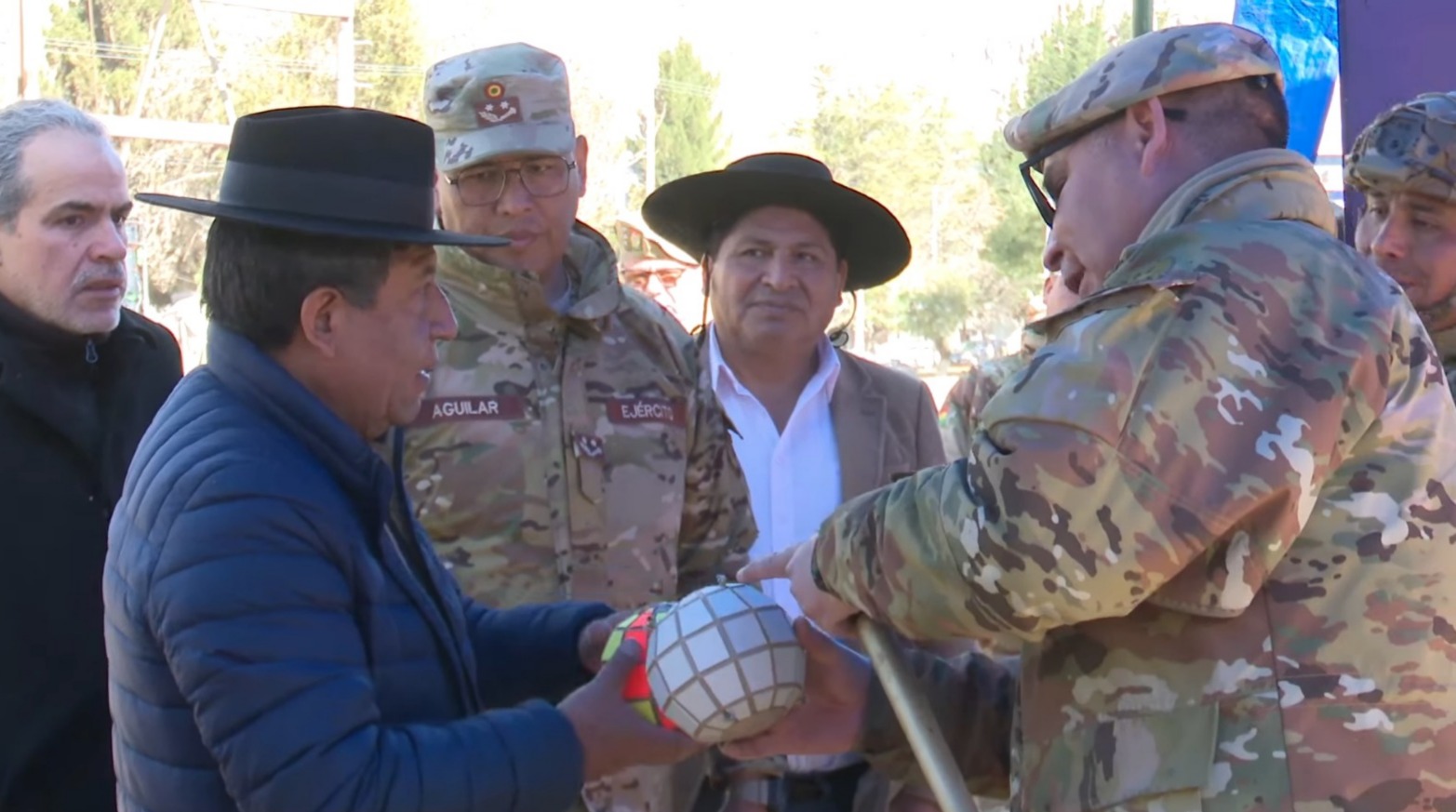 La Paz, 23 de junio de 2025 (ABI). - El vicepresidente David Choquehuanca resaltó la creatividad e innovación del Ejército boliviano en su preparación para enfrentar los incendios forestales, como el desarrollo de granadas diseñadas para apagar fuego en un radio de 10 metros.
