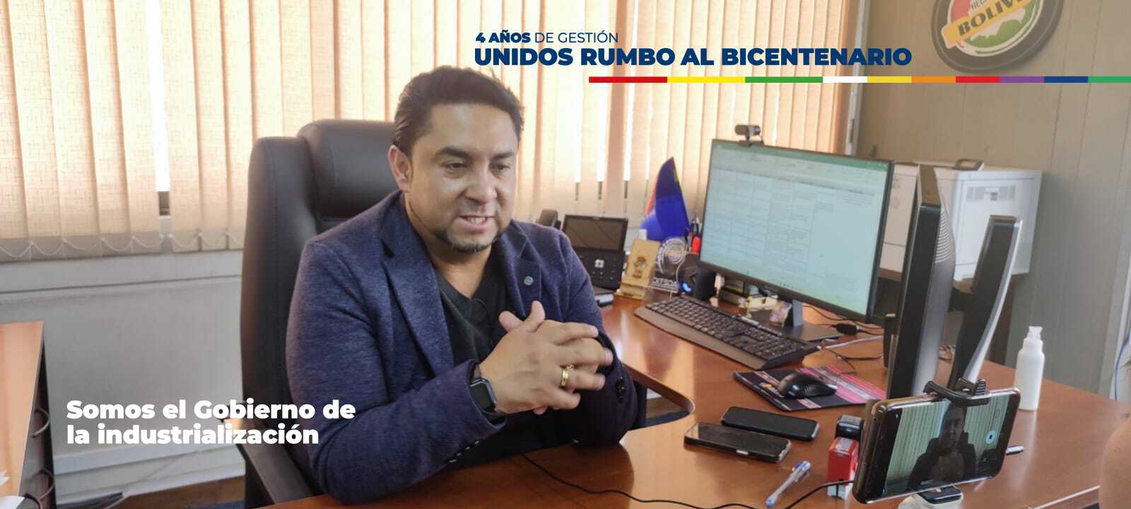 “Estas más de 170 industrias son industrias del bicentenario. Todas llevan el Sello del Bicentenario.¿Por qué estamos implementando este sello? para mostrar que estamos pasando de la nacionalización, a la industrialización de los hidrocarburos, de los recursos naturales, de los alimentos, de los minerales”, explicó el viceministro de Políticas de Industrialización, Luis Siles.