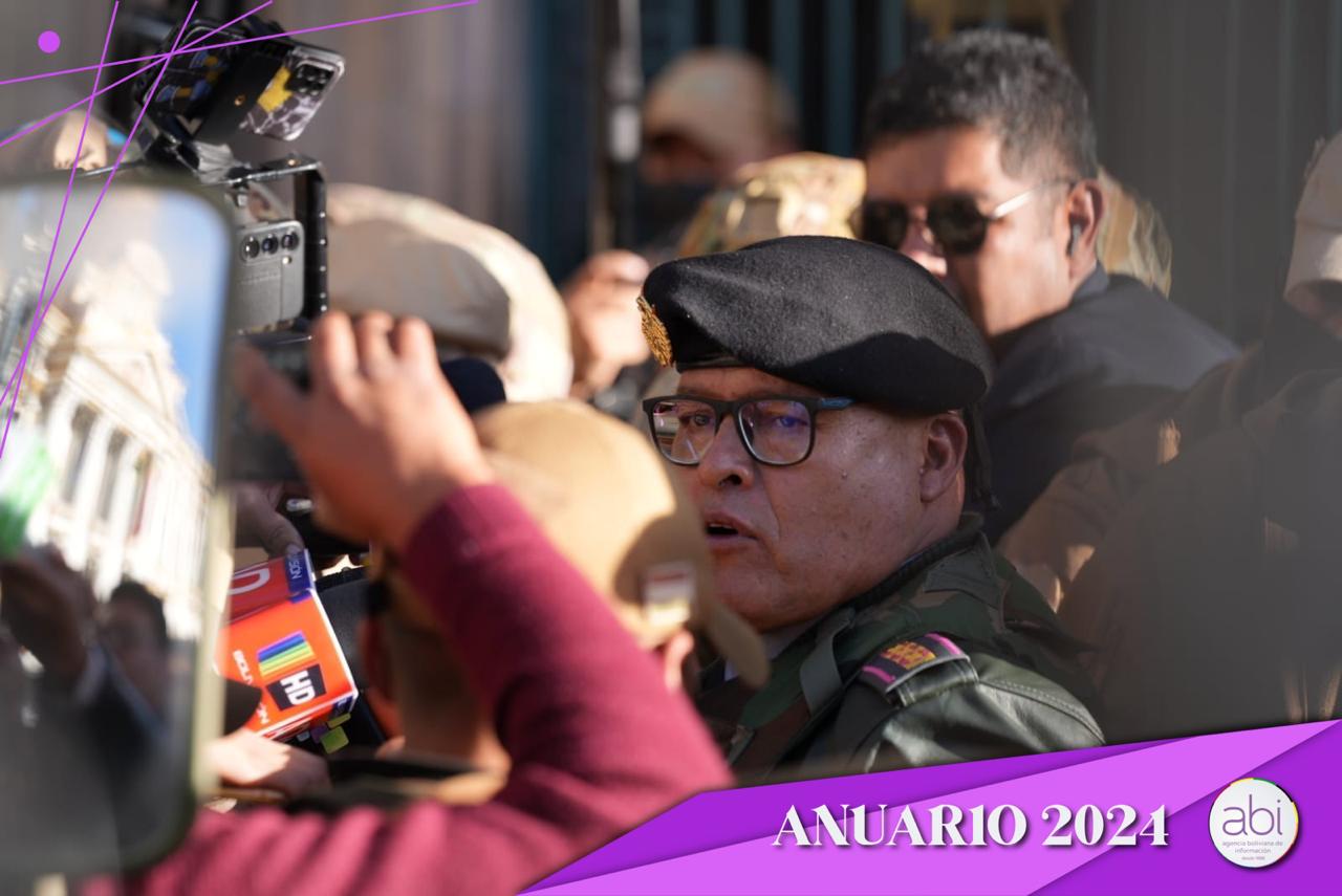 Zúñiga, el entonces comandante de la Fuerza Aérea, Marcelo Zegarra, y de la Armada, Juan Arnez, descendieron de la tanqueta y ni bien llegaron al ingreso de Palacio Quemado les hizo frente el presidente Arce, quien acompañado de sus ministros impidió su ingreso, demostrando valentía y ordenó desmovilizar a la Policía Militar y replegarse a sus cuarteles.