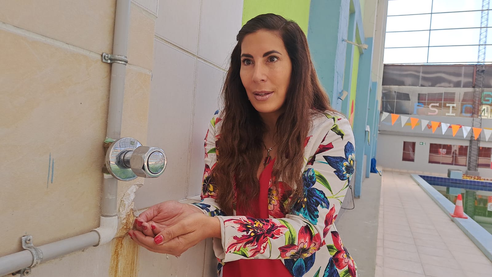 Estas instalación tiene una fuga de agua, y un grifo en mal estado que derrocha agua, pese a que se encaró una campaña desde el Gobierno nacional para el cuidado del líquido elemento por el retraso de la temporada de lluvia y la sequía que se atraviesa en algunas regiones.