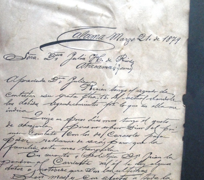 El viernes 21 de marzo de 1879, Avaroa —que escribía su apellido con “uve”, la vigésima tercera letra del alfabeto español— redacta una carta a una amiga de la familia.